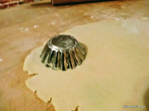 2. Use a round or scalloped cookie cutter. 3 to 3 1/2 inch cutter should be perfect for a regular sized muffin pan. Use a smaller cutter if using a mini muffin tin. Cut out 12 circles and press into a nonstick muffin